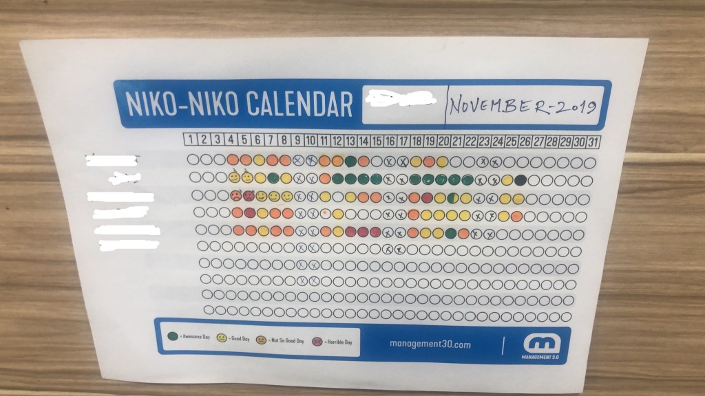If you want to learn more about Niko-Niko calendar, you can look at the management 3.0 page here on the same.